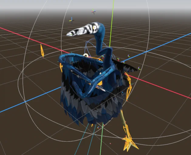 The second major encounter for the game is this bird boss. I designed the creature by myself using Blender to model, texture and animate it. Like the other creatures I programmed it myself and made it more challenging than the fish fight.