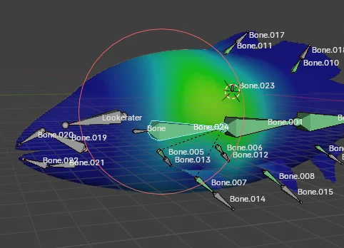 The first major enemy I made for the game is the giant fish. I used all of the software mentioned previusly. I made its animations in blender and used physical bones for it. I programmed all of its projectile behavoirs as well and helped balance the difficulty of it.